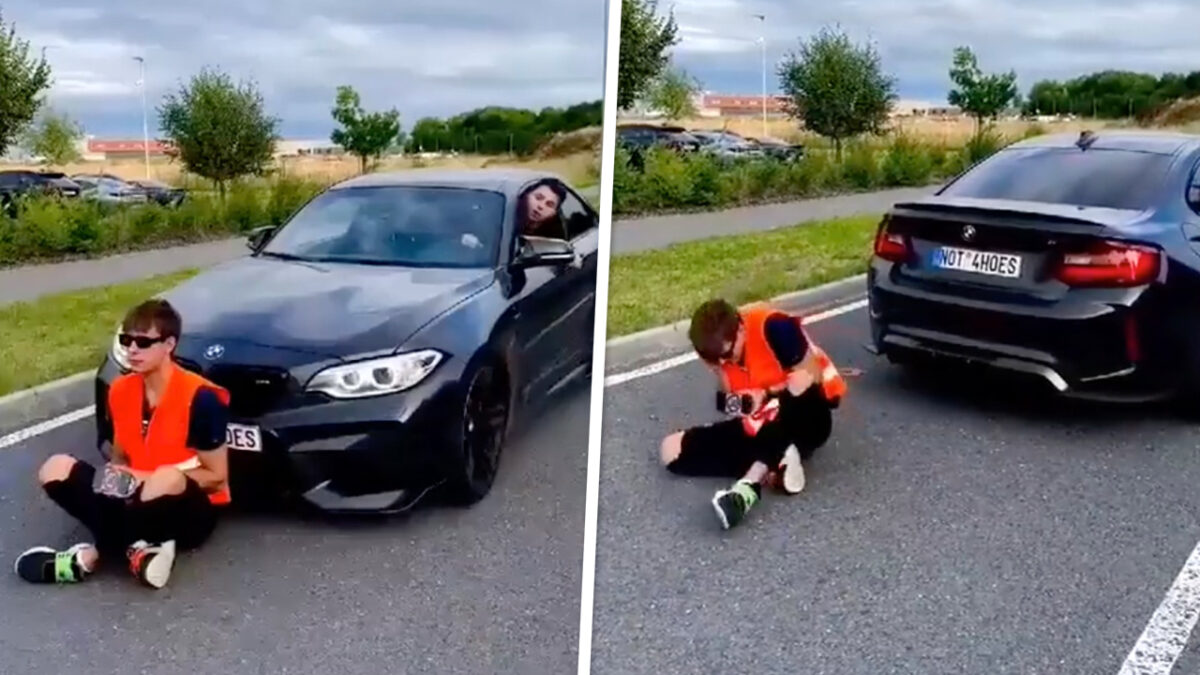 Tsjechische BMW-rijder heeft creatieve manier om klimaatactivist te verjagen