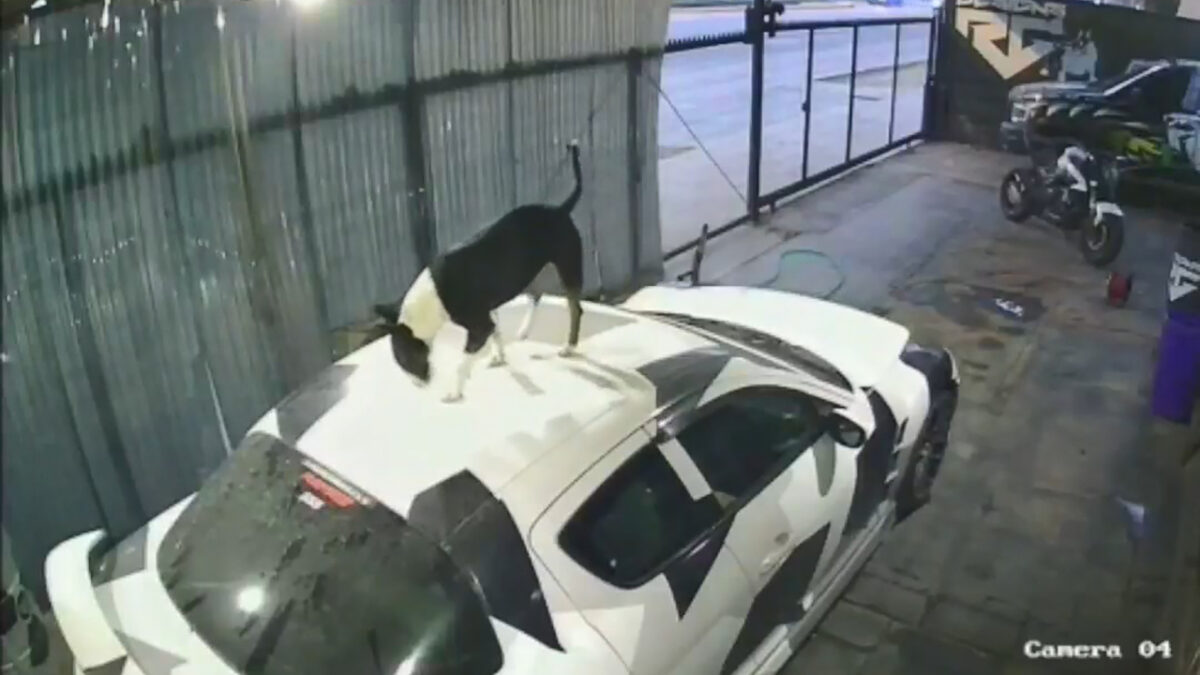 De eigenaar heeft zo te zien voor niets zoveel moeite gedaan om zijn auto te camoufleren. Zonder CCTV had hij overigens nooit kunnen raden wie deze dampende boodschap heeft achtergelaten.
