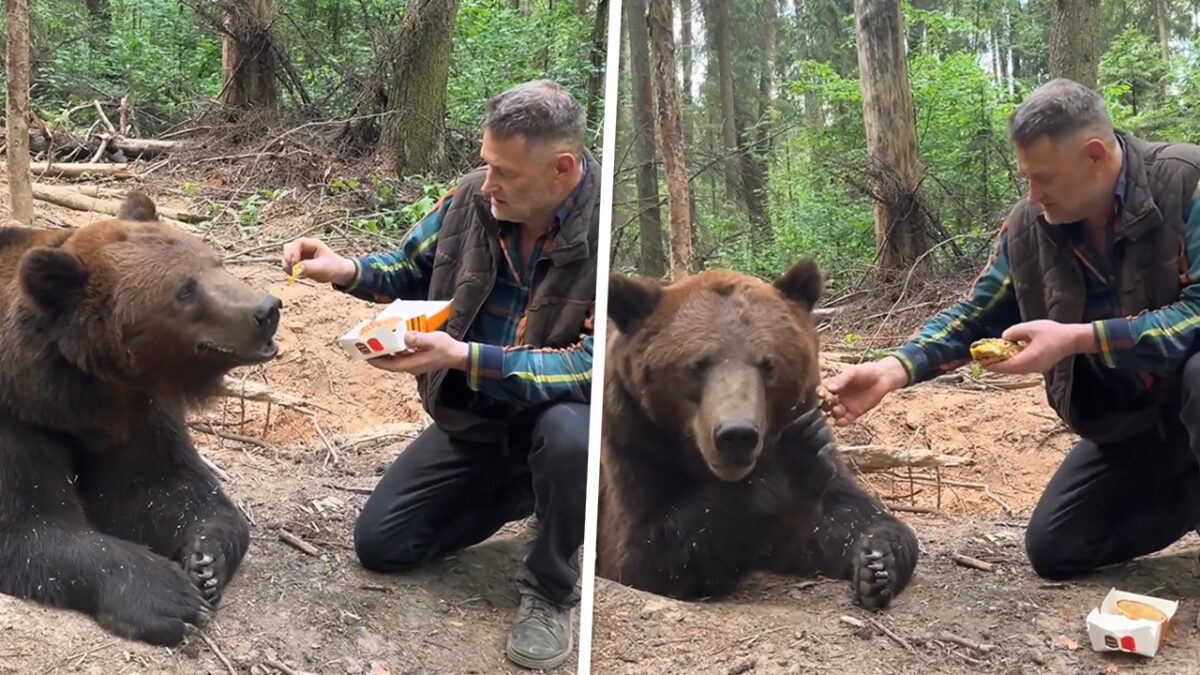 Als zelfs een beer vriendelijk bedankt dan moet het echt een slechte hamburger zijn. "Nee dank je, ik heb niet zo'n trek. Net nog een koelbox van een stel toeristen leeg getrokken en ik moet op mijn figuur letten".