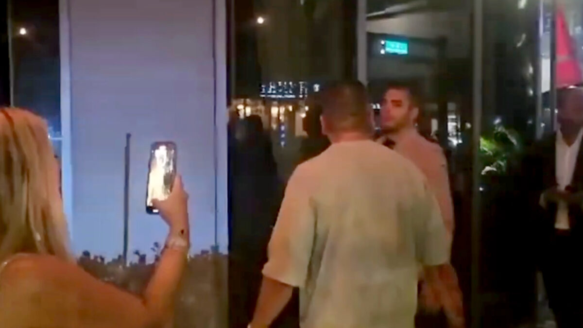 Beveiligers Lionel Messi en David Beckham takelen fotograferende man toe in Miami
