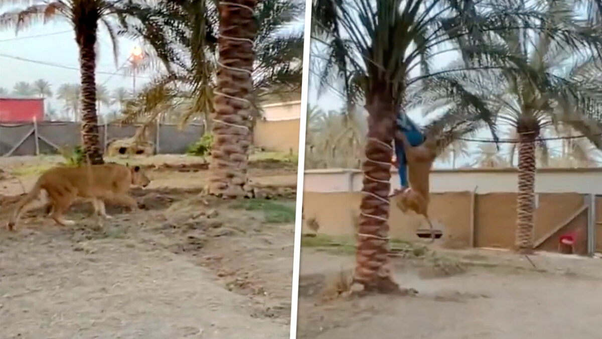Arabier heeft een leeuw in plaats van een hond, tuinman kan dit niet waarderen Dieren