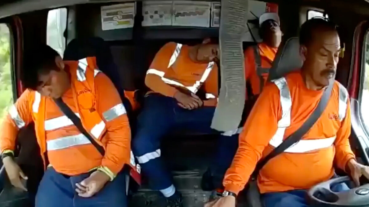Dit viertal uit Peru had er klaarblijkelijk een zware werkdag op zitten, maar in dit soort gevallen is het wel aan te raden dat tenminste één persoon - en bij voorkeur de bestuurder - wakker blijft.