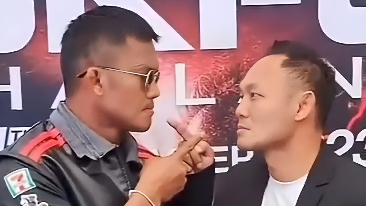Nu hebben we al een hoop opmerkelijke dingen gezien tijdens een staredown, maar wat Buakaw hier tegen Saenchai doet is buitengewoon schofterig...