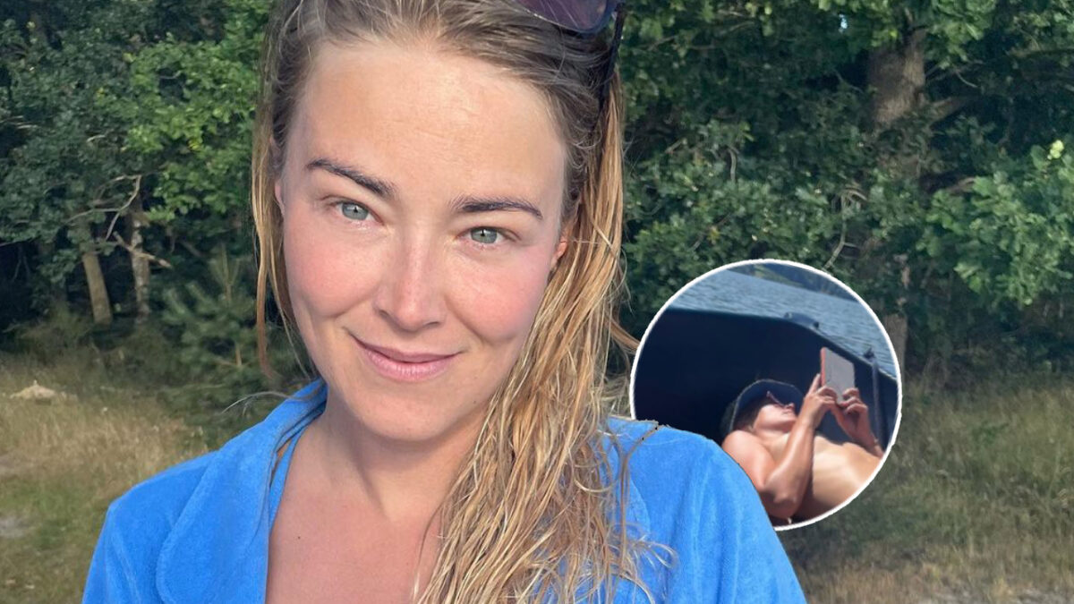 Geraldine is zo druk met lezen dat ze haar complete bovenstukje is vergeten Shownieuws Instagram/geraldine_kemper