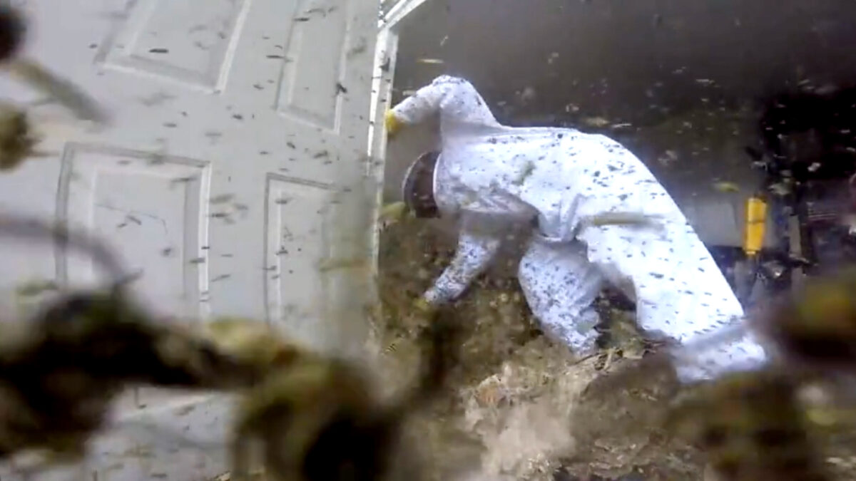 Een man uit Patterson (Louisiana) maakte een video waarin hij een gigantisch wespennest uit een tuinhuisje verwijderde. De niet zo gezellige insecten begonnen al overlast te veroorzaken voor hun omgeving en als het nest niet zou worden verwijderd dan zou het waarschijnlijk alleen maar blijven groeien.