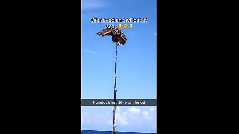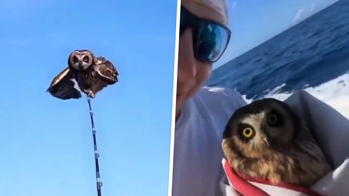 Verdwaalde uil wordt midden op zee gered door helden op een boot