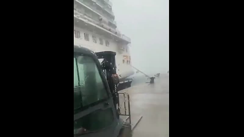Cruiseschip Britannia (330 meter lang, 143.000 ton zwaar en een capaciteit van 5.000 passagiers) dat in de haven van Palma lag raakte dankzij de wind losgeslagen en dreef richting een nabijgelegen vrachtschip waar het dan ook mee in aanvaring kwam. De klap leverde een aantal lichtgewonden op, maar de paniek was groot. Ligbedden vlogen over het dek en tenten werden van het schip losgerukt. Inmiddels is de storm op het eiland gaan liggen en kan de schade worden opgemaakt.