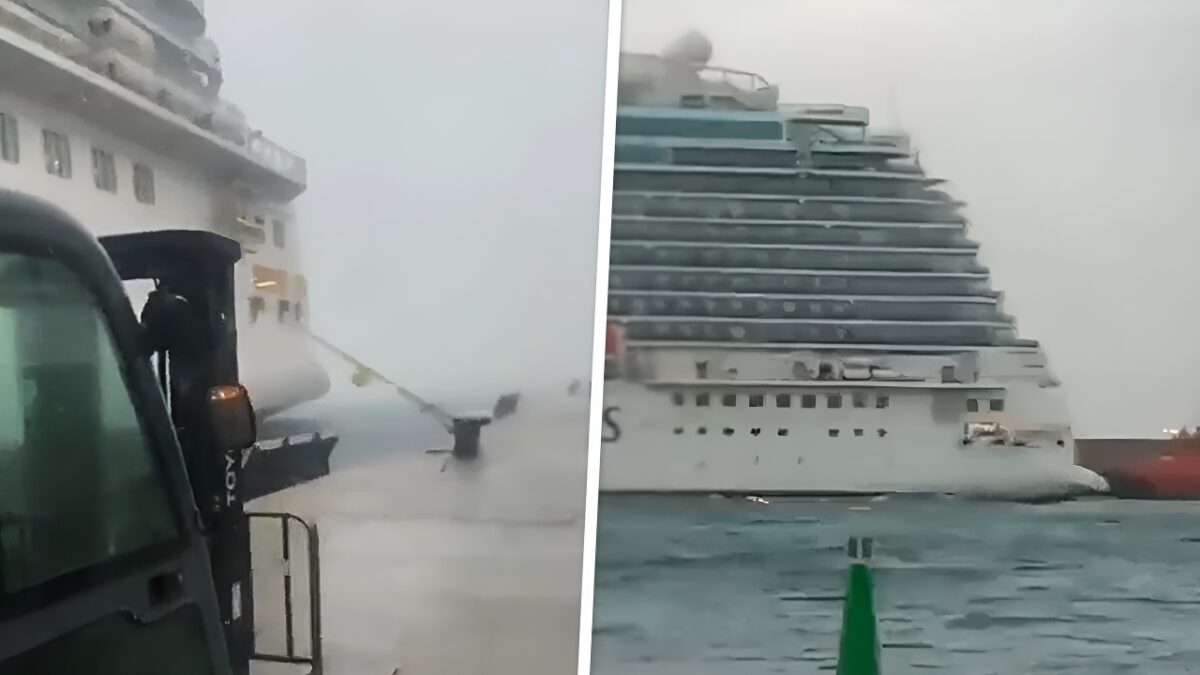 Losgeslagen cruiseschip knalt dankzij storm op Mallorca tegen vrachtschip