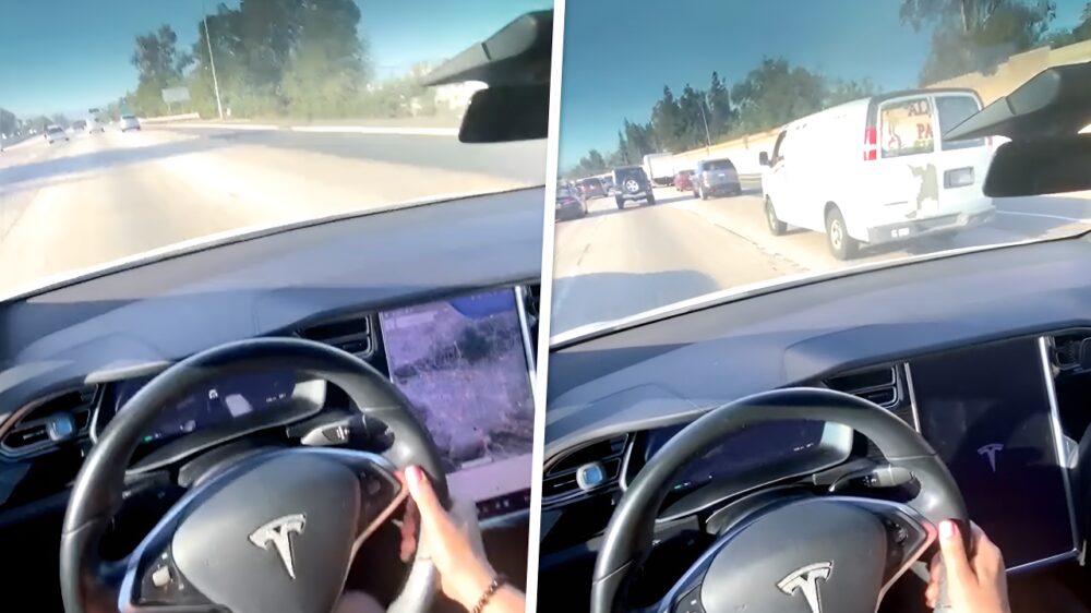 Dit is wat er gebeurt als je een Tesla tijdens het rijden op een drukke snelweg reboot