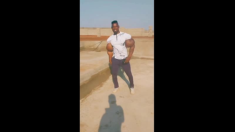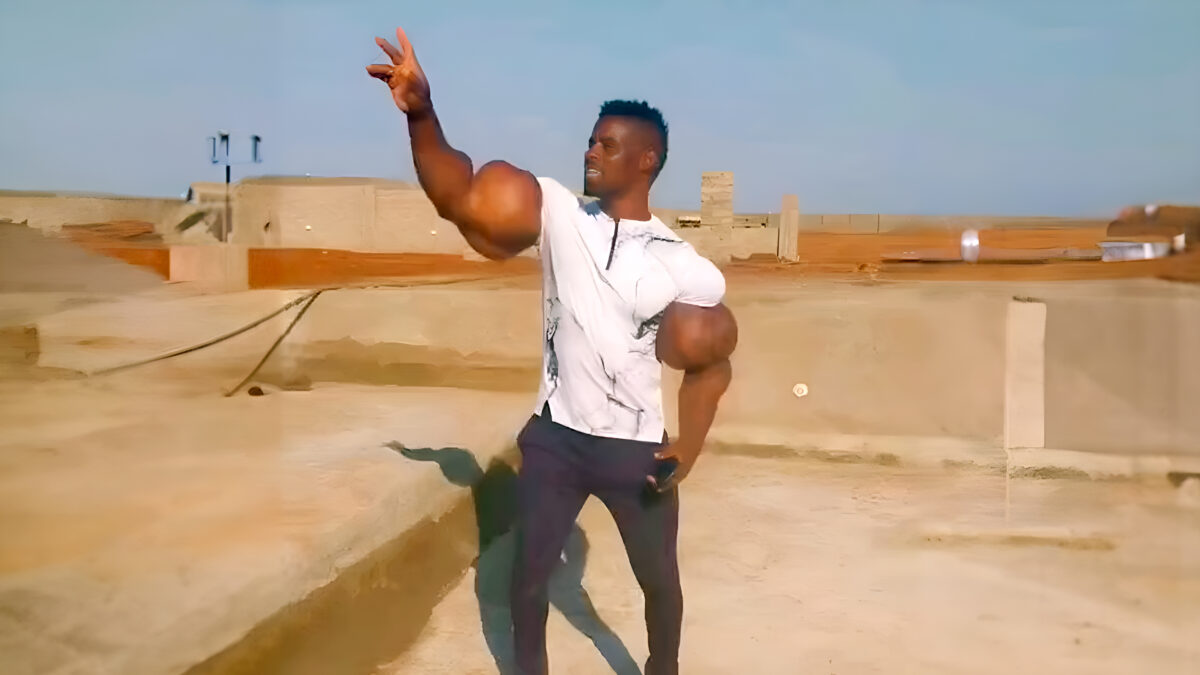 Afrikaanse Hulk laat na jaren keihard training vol trots zijn gigantische biceps zien