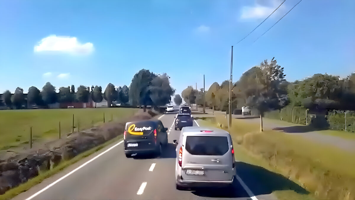 Chauffeur van het Belgische EasyPost heeft haast en jankt z'n busje overal doorheen