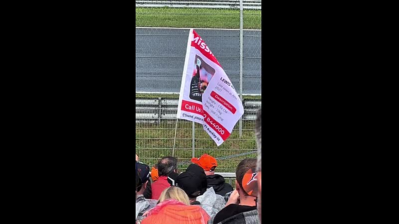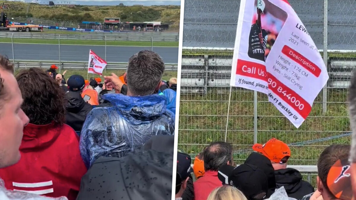 Je zou niet zeggen dat de tribune van een Formule 1-race er een geschikte plek voor zou zijn, maar toch wilde deze mensen in Zandvoort graag even de aandacht vragen voor iemand die ze al een tijdje niet meer hadden gezien. Mocht iemand hem gevonden hebben, neem dan even contact op met de Mercedes-fabriek in Brackley.