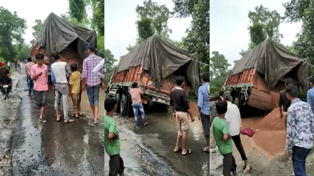 Je zou denken dat het niet zo eenvoudig is om de vrachtwagen uit de greppel te krijgen, maar in India hebben ze dit varkentje zo gewassen.