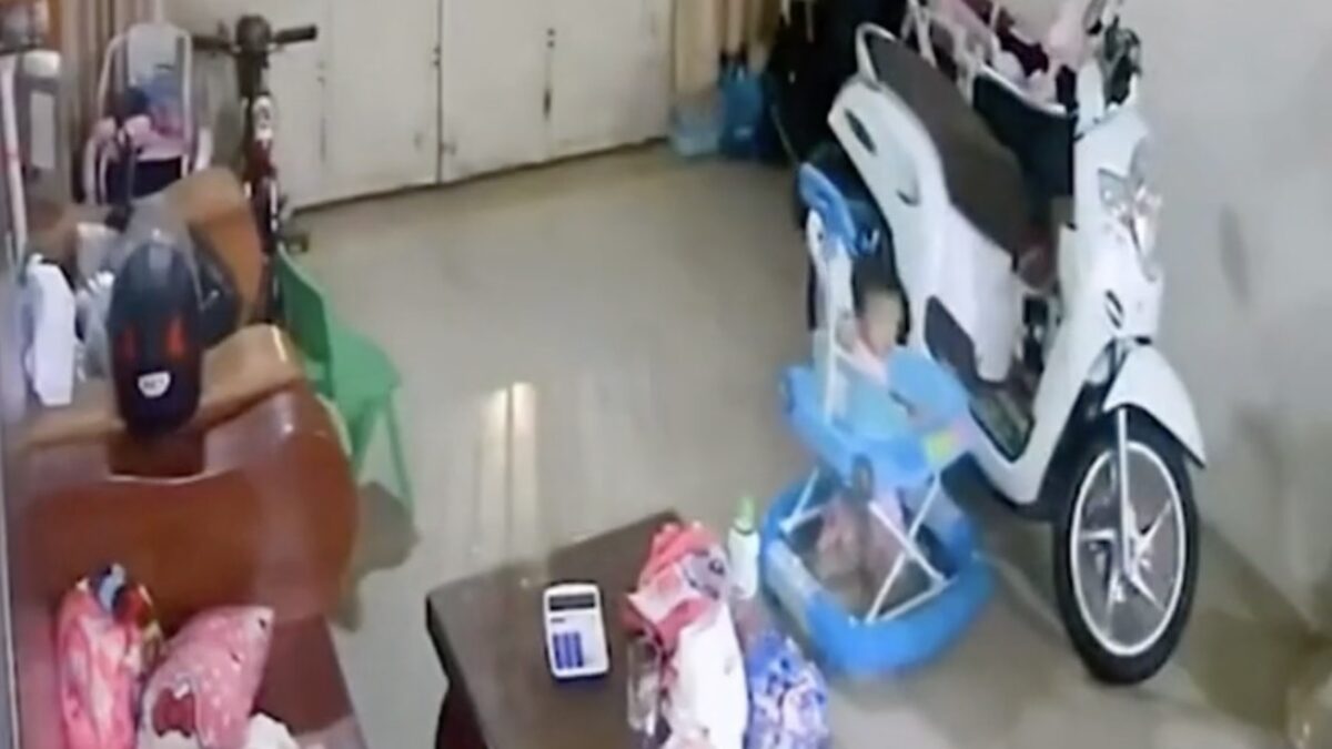 Beveiligingscamera's legden het exacte moment vast waarop een moeder haar kinderen weet te redden, seconden voordat het dak van haar huis instortte. 😱