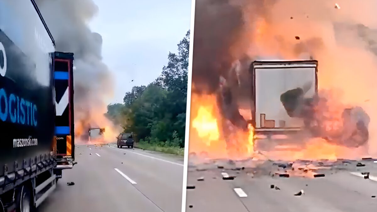 Bizarre beelden: exploderende gasflessen na ernstige kop-staartbotsing op de A2