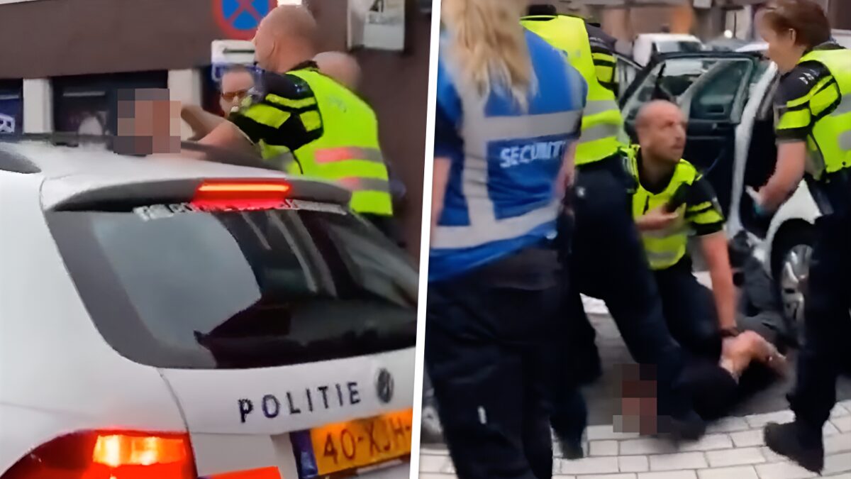 Hoe dan ook; deze jongeman is zo te zien (en horen) behoorlijk teleurgesteld dat 'ie toch een ritje naar het bureau moet maken en op het moment dat hij daadwerkelijk in de auto zit ontstaat er kortsluiting in z'n bovenkamer waarna hij besluit de autoruit eruit te trappen. Niet de allerbeste beslissing op dat moment, want een paar seconden later lig je met je gezicht op de straat en een knie in je rug.