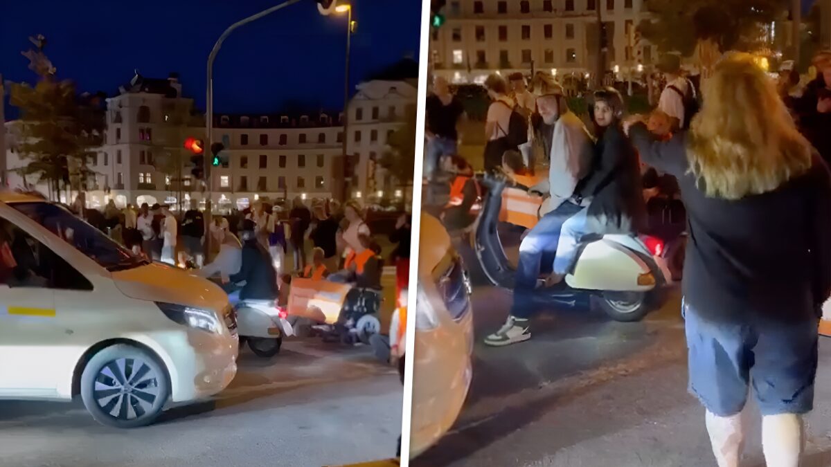 Man op scooter geeft flink gas voor de neus van klimaatactivisten in München