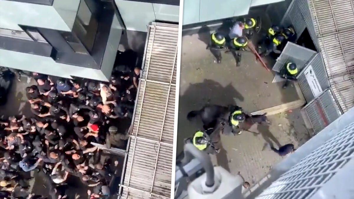 Rellen tussen fans Utrecht en Feyenoord, supporters gezinsvak vluchten garage in