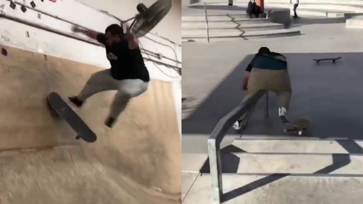 Als je wat pondjes meer meezeult is het een bijzonder goed idee om te gaan sporten, al is skateboarden misschien niet het allerbeste plan aller tijden.