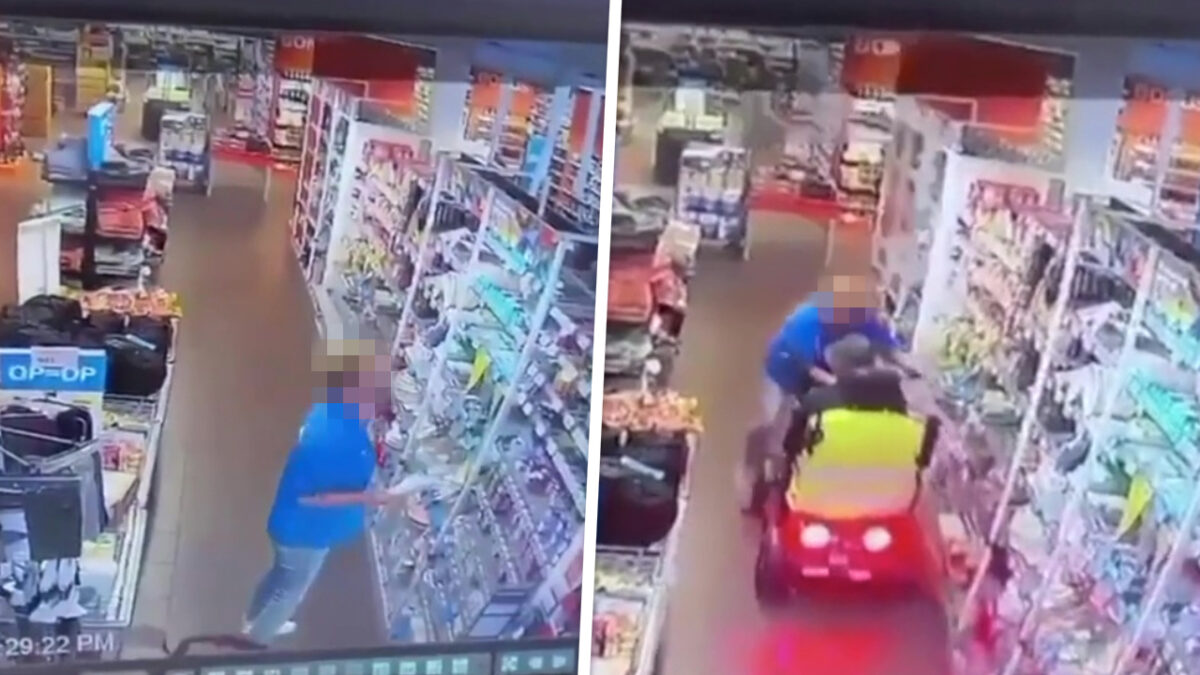 Nu kan het natuurlijk gewoon zijn dat de beste man in de scootmobiel als eerste bij de bier-aanbiedingen wilde zijn, maar gezien het feit dat zijn remlichten lijken te branden vermoeden we dat hij de controle over zijn bolide verloor. De beelden van deze aanrijding gaan als een lopend vuurtje het internet over en lijken opgenomen te zijn in een vestiging in Bladel.