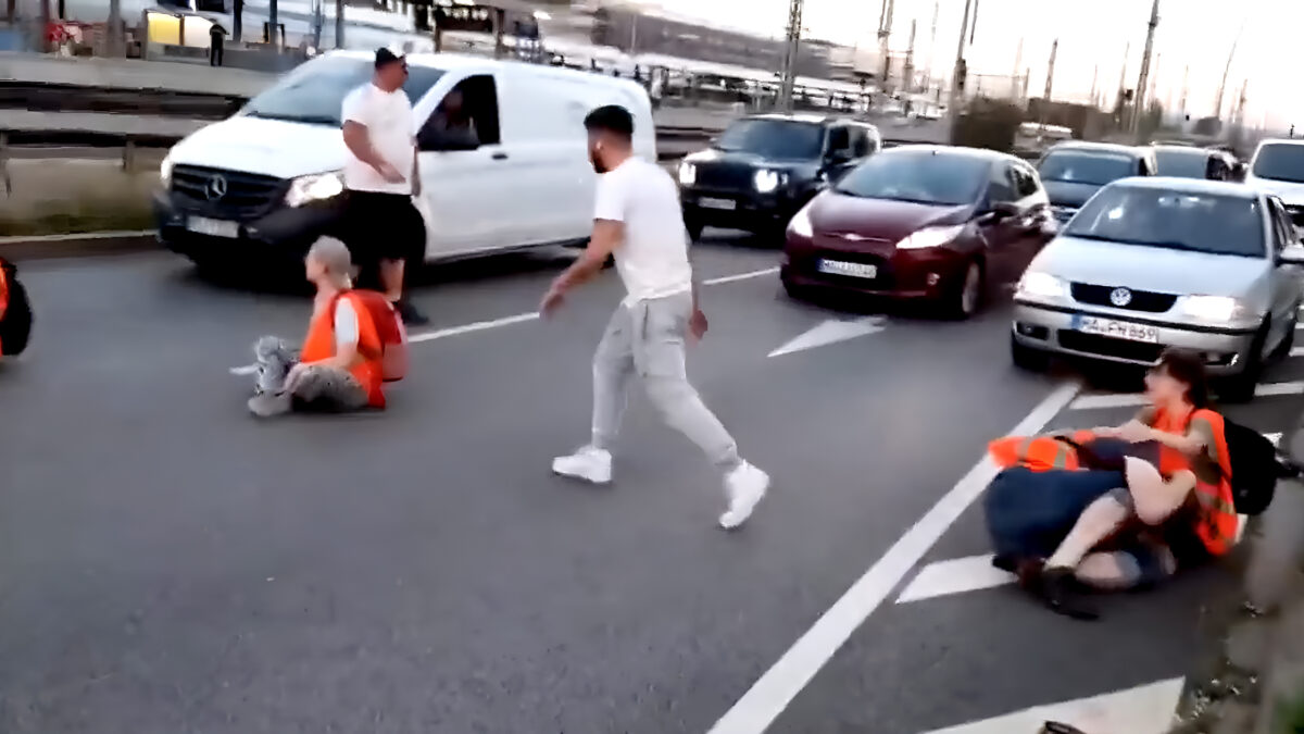 Duitse automobilist gaat door het lint en schopt klimaatactivisten van de weg