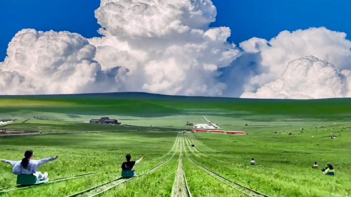Op de Hulunbuir prairie in Binnen-Mongolië hebben ze 1.200 meter lange grasglijbanen. Hoe vet is dat?