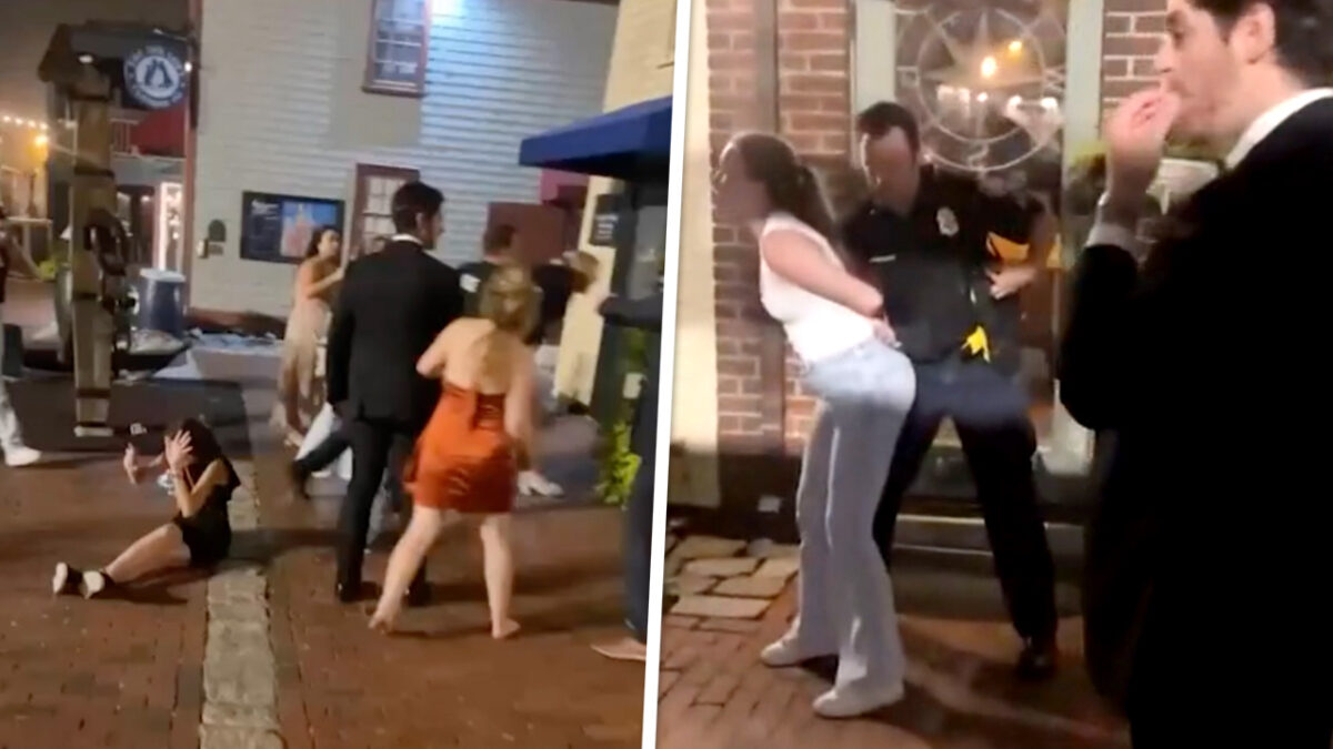 Tijdens een bruiloft in Rhode Island escaleerde een situatie volledig uit de klauwen waarbij 6 personen in confrontatie kwamen met de lokale politie. Een video laat zien hoe een vrouw een agent in het kruis schopt en een andere gast bewusteloos wordt geslagen.
