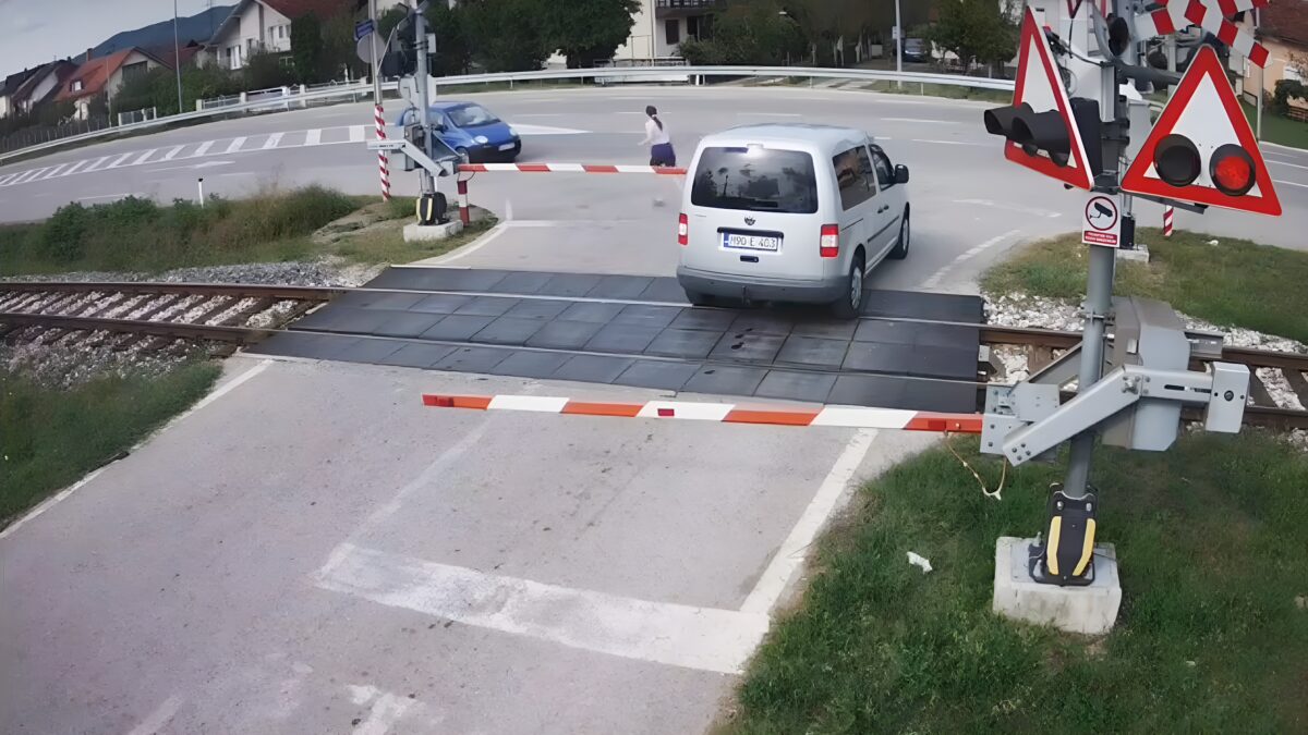 Een vrouw in Prijedor, een stad met zo'n 120.000 inwoners in Bosnië en Herzegovina, raakt compleet in paniek nadat de slagbomen naar beneden gaan terwijl ze net over de spoorwegovergang rijdt. Ieder weldenkend menn zou er gewoon rechts langs rijden maar er ontstaat blijkbaar zo'n heftige kortsluiting in haar bovenkamer dat ze in paniek wegrent en haar auto lekker laat staan.