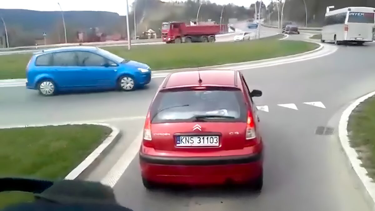 Kweenie hoor, maar dan heb je zo'n 75 seconden in alle rust kunnen nadenken hoe je deze enorm drukke rotonde moet bedwingen en dan doe je dit. HOE DAN? Zou het stiekem familie van deze Belg zijn? #oudedoos