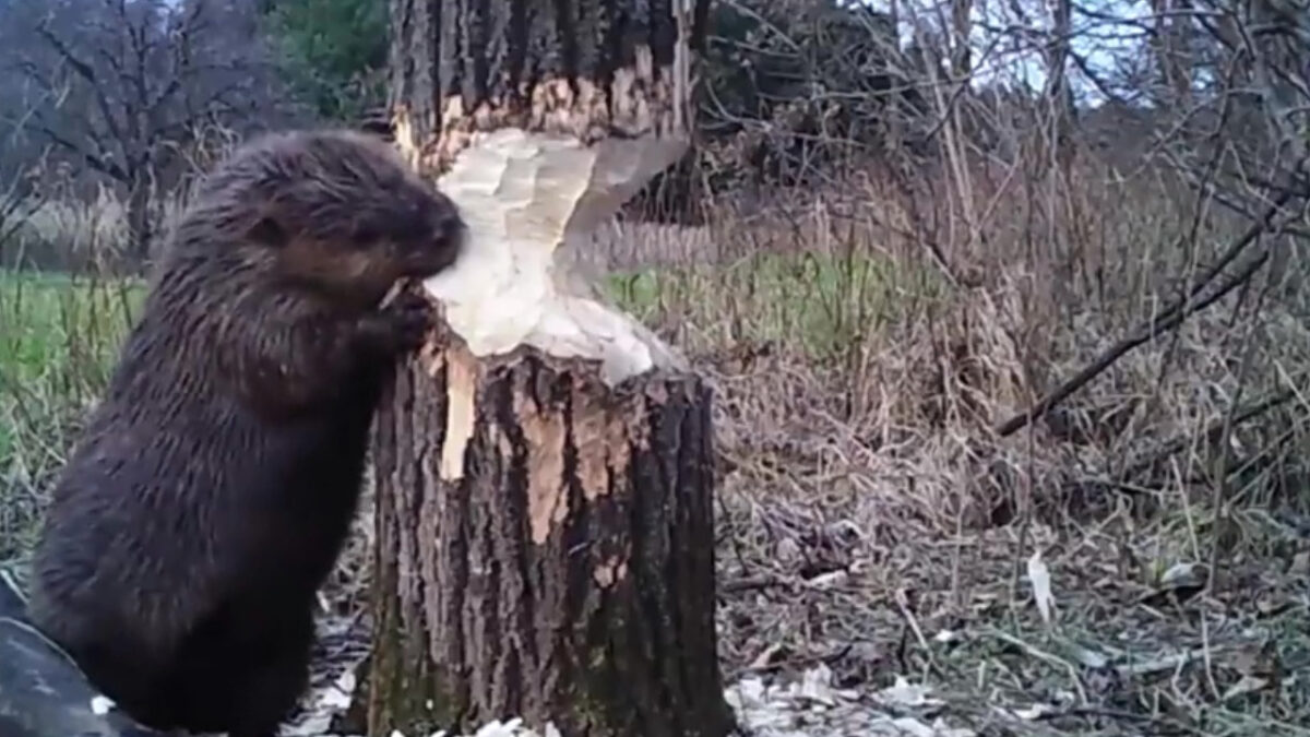 Even helemaal zen worden met het kijken naar een bever die bomen omknaagt