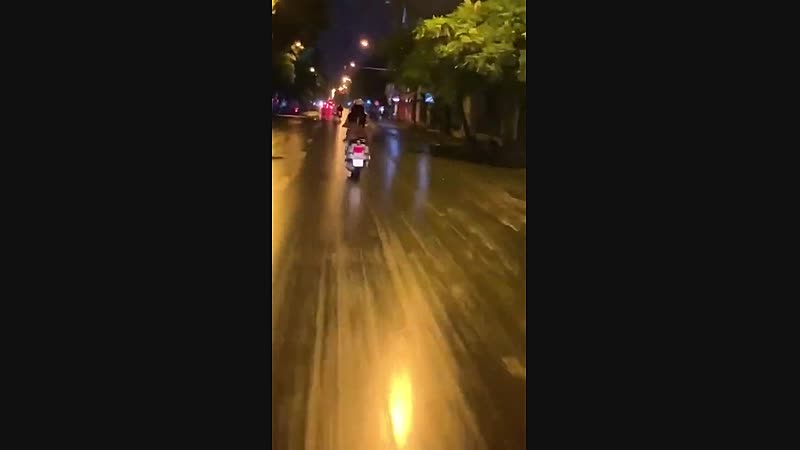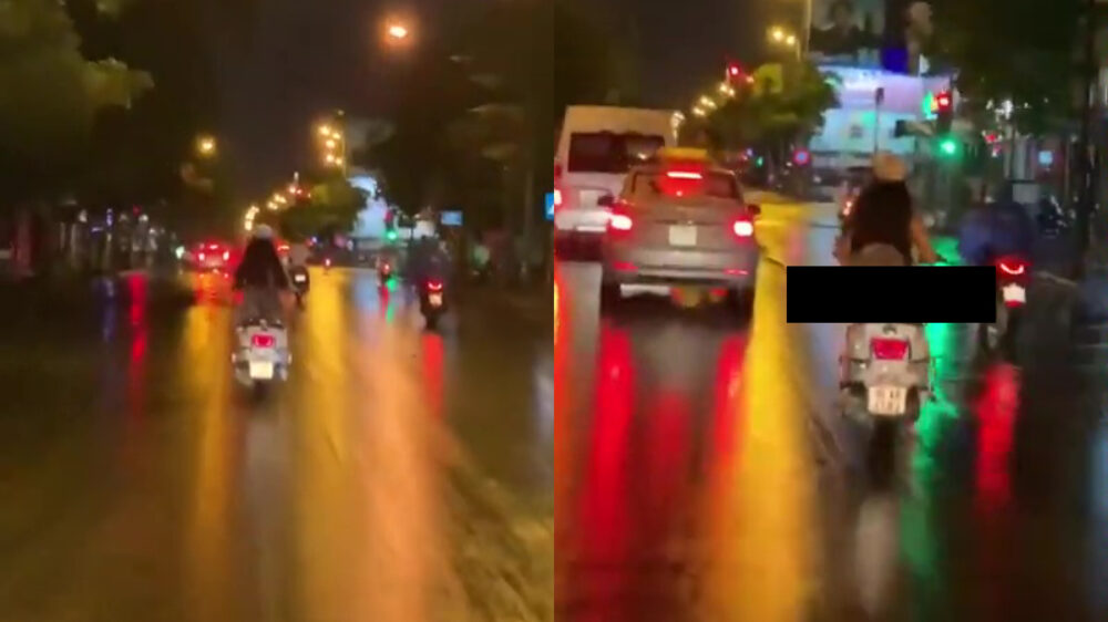 Dankzij de wind krijgen we een prima uitzicht op de bips van deze scooterdame