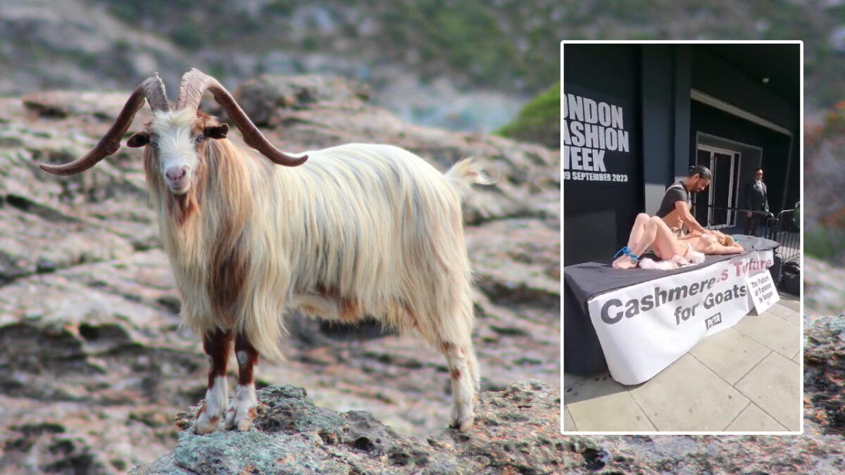 PETA-demonstrante laat zich "plukken" als protest tegen kasjmier kleding