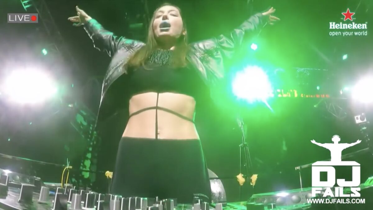 Dj Mari Ferrari verliest haar kipfilets tijdens een iets te enthousiaste liveset Fun