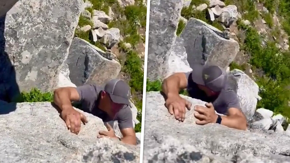 Dat het niet handig is om je grip te verliezen ondervond deze klimmer ook waarna hij naar eigen zeggen zo'n 15 meter naar beneden viel en ook nog eens 23 meter van de berg gleed. Gelukkig kon 'ie het zonder al te veel kleerscheuren navertellen en heeft hij de video met de rest van de wereld gedeeld.