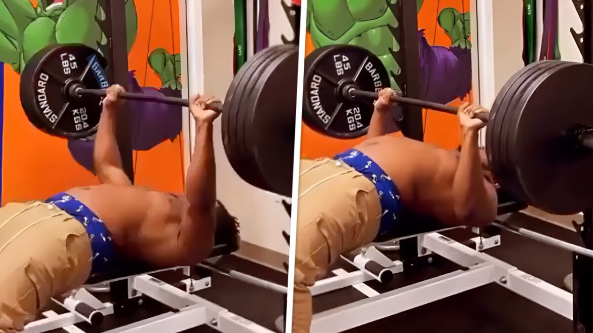 Je weet ondertussen wel dat het verstandig is om een spotter in te schakelen bij het bankdrukken, maar sommige mensen zijn nu eenmaal hardleers.