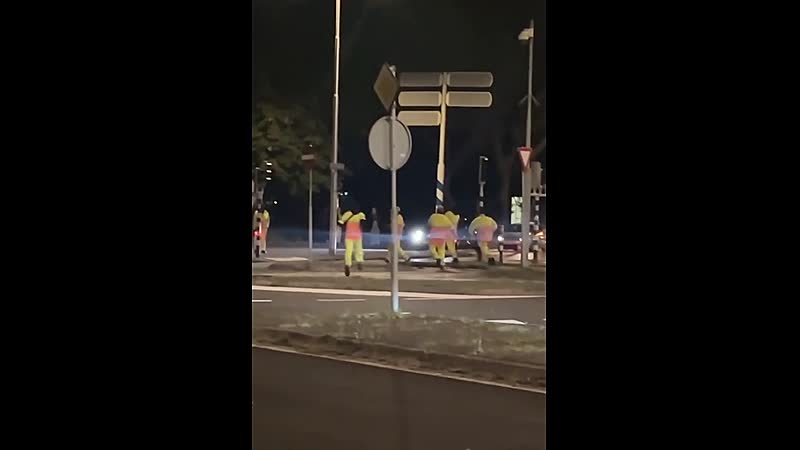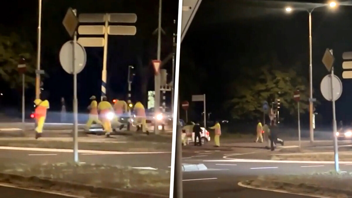 De reden dat deze verkeersregelaars met elkaar op de vuist gingen is tot nu toe onbekend, maar het is op z'n minst een gekke vertoning als je ineens meerdere gele hesjes achter elkaar aan ziet rennen. Vooral één persoon lijkt hier de Sjaak te zijn en er komt zelfs een vliegende karatetrap door het beeld gevlogen. 🥋