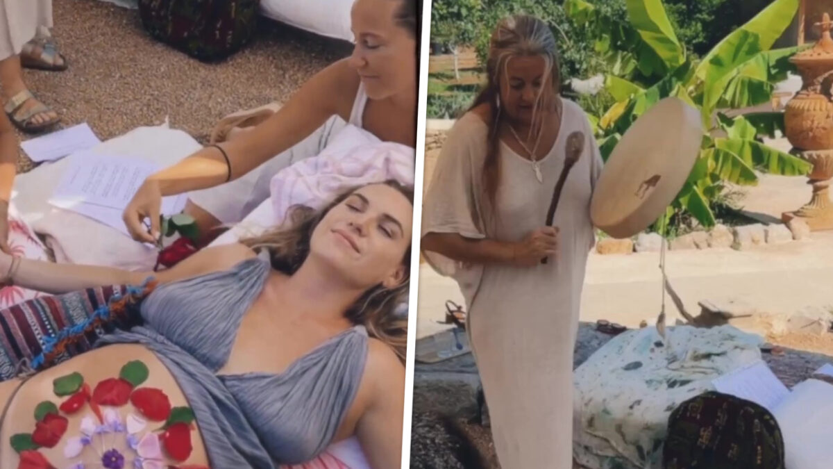Jessie Jazz Vuijk laat haar ongeboren zoon op Ibiza zegenen door een trommelende doula