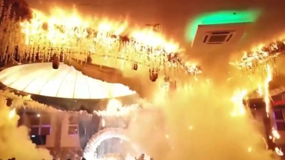 Tijdens de feestelijkheden, waarbij maar liefst 1300 mensen aanwezig waren, werd vuurwerk aangestoken en dat bleek het begin van een gigantische brand die ongenadig om zich heen sloeg. De zaal bleek totaal niet te voldoen aan de veiligheidseisen waardoor het plafond al snel naar beneden kwam. Overlevenden werden naar nabijgelegen ziekenhuizen vervoerd.