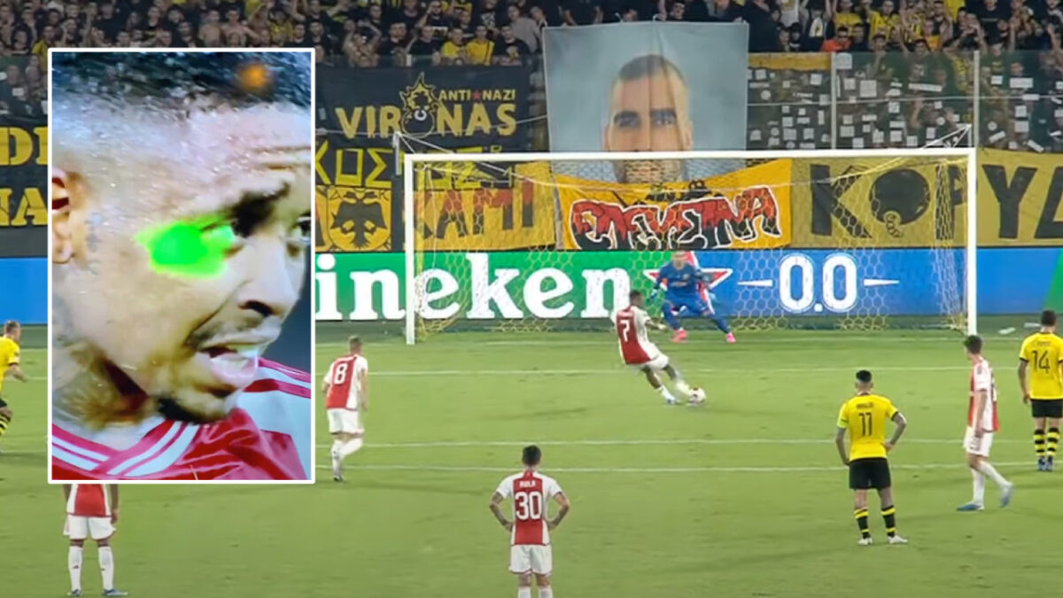 Ajax tijdens wedstrijd tegen AEK Athene getrakteerd op 'lasershow', trainer Steijn woest