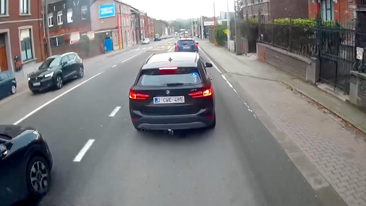 Collegiale BMW-rijder geeft vrachtwagen remtest zodat iedereen kan invoegen