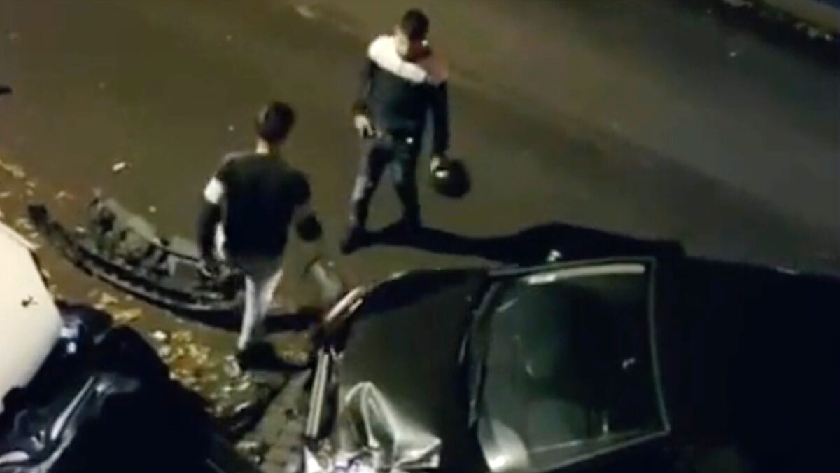 Franse lachgasprofessionals crashen de voiture van hun papa in Lyon