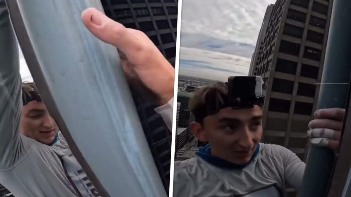 Security van enorm gebouw blijkt niet zo blij te zijn met freeclimber