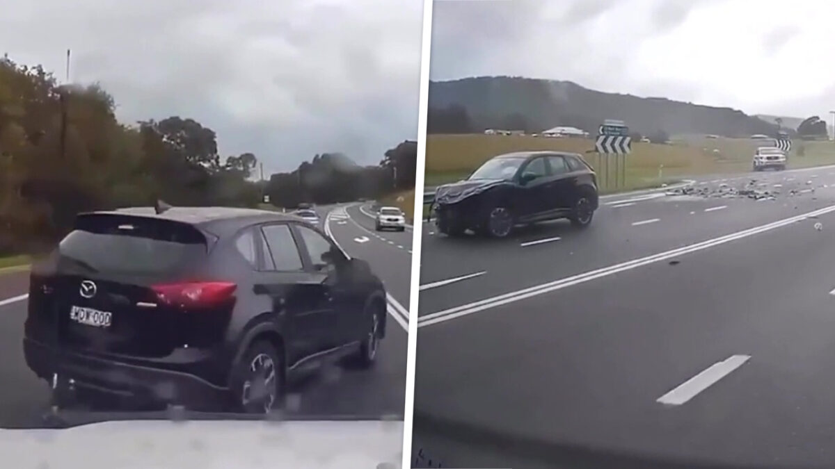 Mazdabestuurder rijdt vol gas de weg op en veroorzaakt keiharde crash