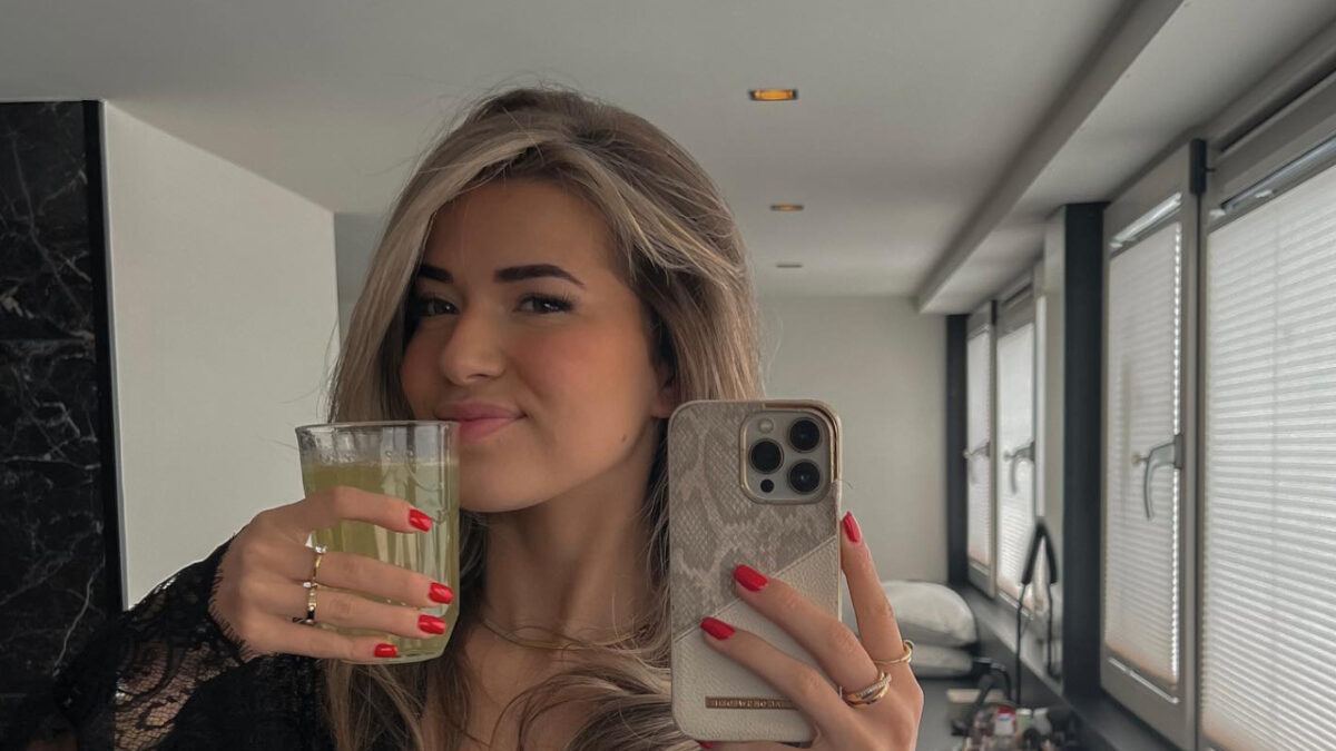 Ons aller Jade Anna kreeg gisteren natuurlijk een flinke klap te verwerken toen ze erachter kwam dat Gio haar binnen no-time alweer had ingeruild voor een andere fitchick, maar de kachel moet uiteindelijk blijven roken en dus trok ze maar weer een leuk setje aan om haar ochtendritueel (in volle make-up) in te doen. Een lekker glaasje collageenbooster, wie wil dat nou niet? Nou, wij dus, maar eerlijk is eerlijk: dankzij dit soort foto's zouden we bijna een potje bestellen. Bijna.