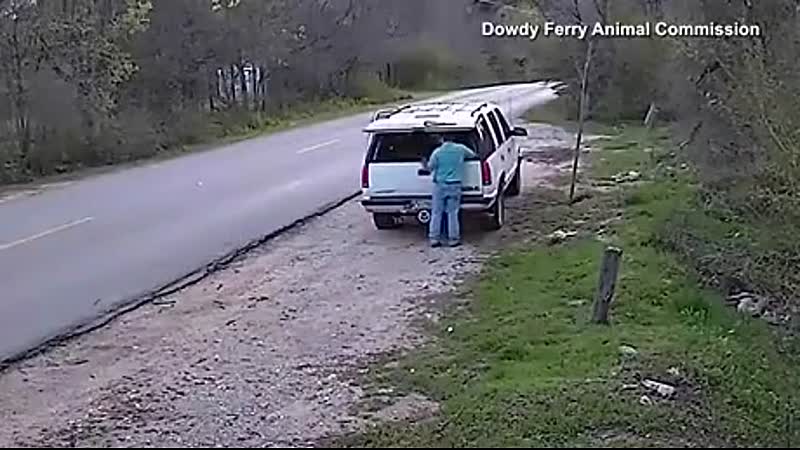 Vorige maand hebben bewakingscamera's van de Dowdy Ferry Animal Commission een man betrapt die langs de kant van Teagarden Road geparkeerd stond en zijn hond dumpte. Te zien is hoe hij zijn Duitse herder uit zijn auto trekt en weer rustig instapt terwijl het dier hem probeert te volgen als hij wegrijdt.