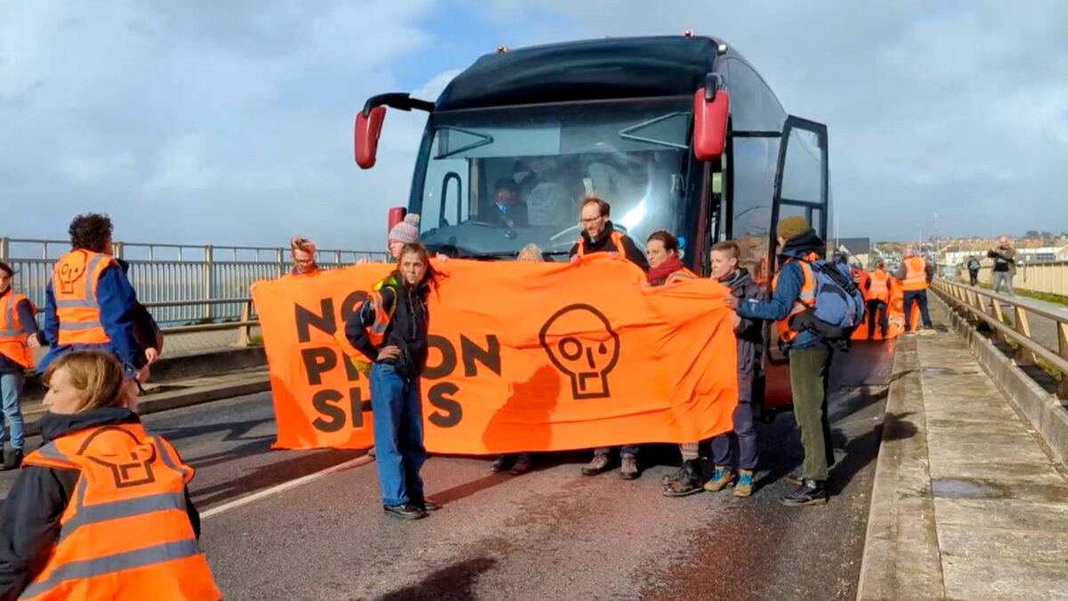 Buschauffeur stopt niet voor de klimaatactivisten van Just Stop Oil