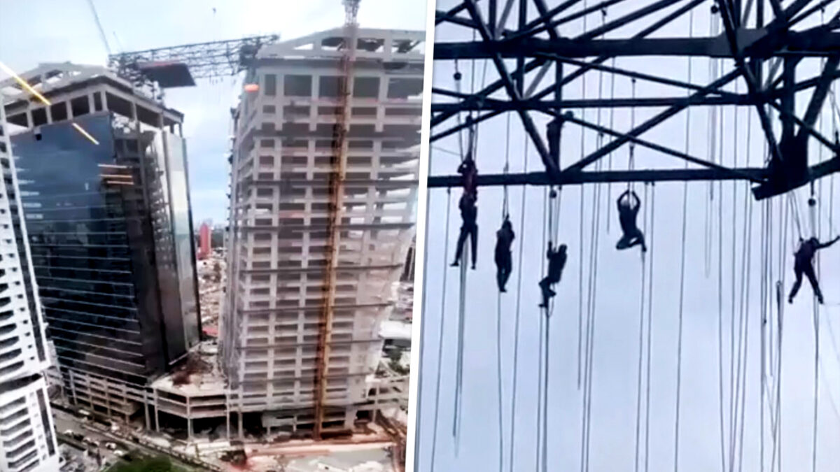 Horrorscène: bouwvakkers hangen aan kabels door ingestort gebouw in São Paulo