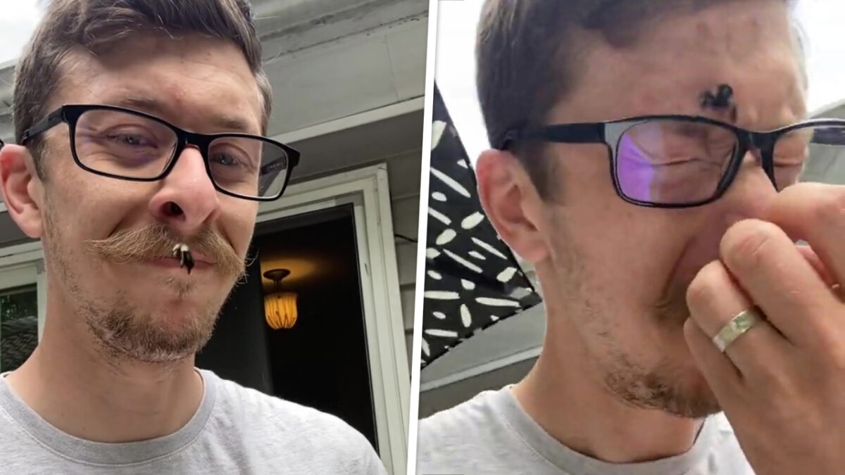 Vandaag in de categorie 'dingen die je eigenlijk nooit mee wil maken': een hommel in je neusgat. Oké, de man heeft dan wel beste neusgaten, maar dan verwacht je nog niet dat zo'n beest er doodleuk naar binnen vliegt en zijn angel in je binnenkant plant.