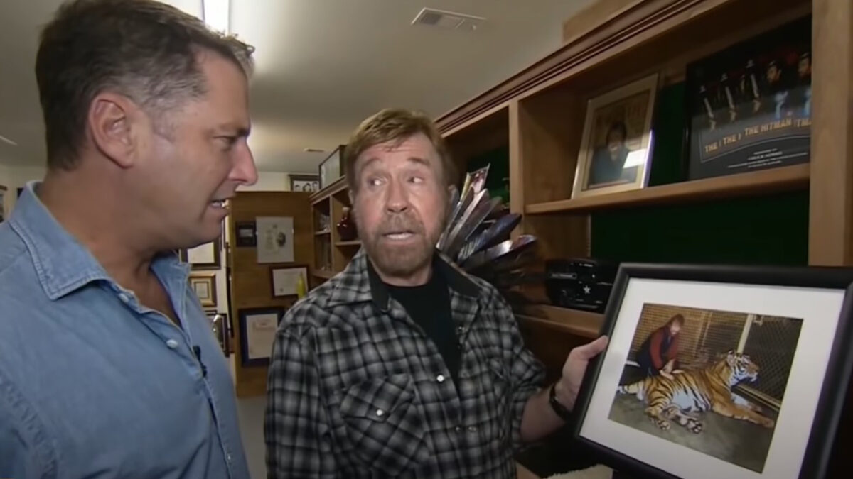 Die keer dat Chuck Norris moest oppassen voor een lijpe tijger