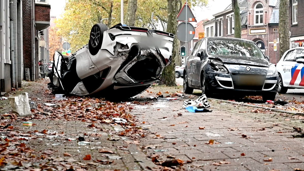 Auto slaat over de kop na spectaculaire achtervolging in Tilburg